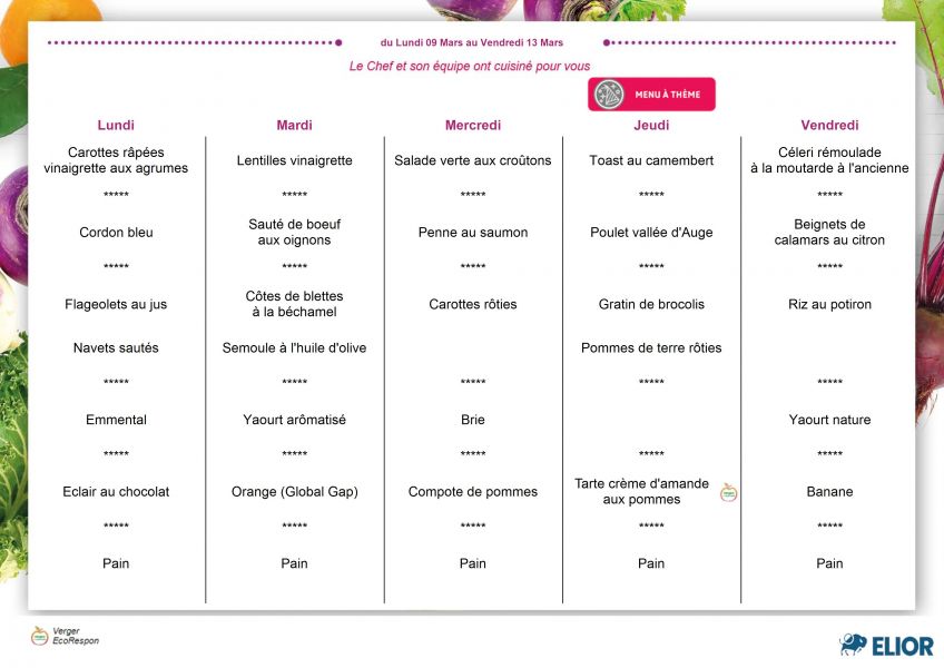 Menu de la semaine